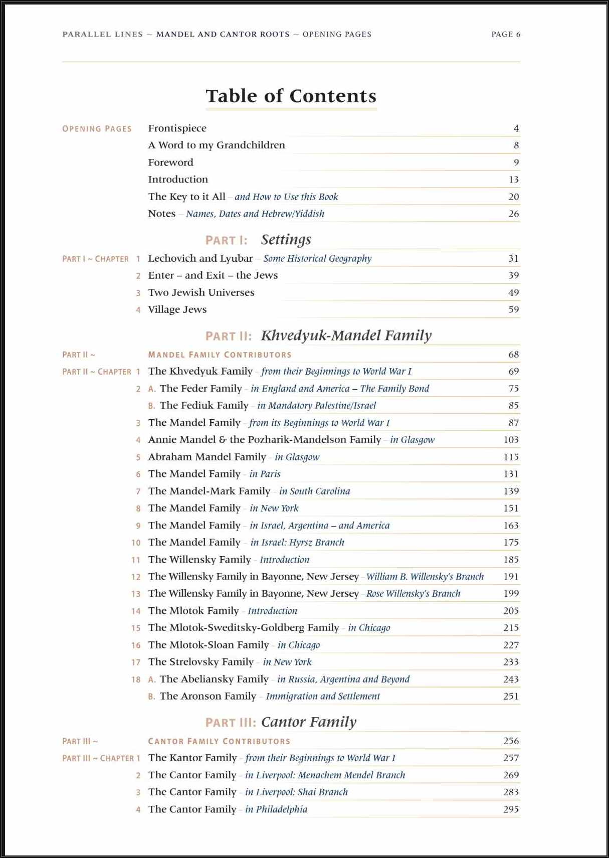 Table of Contents – Parallel Lines